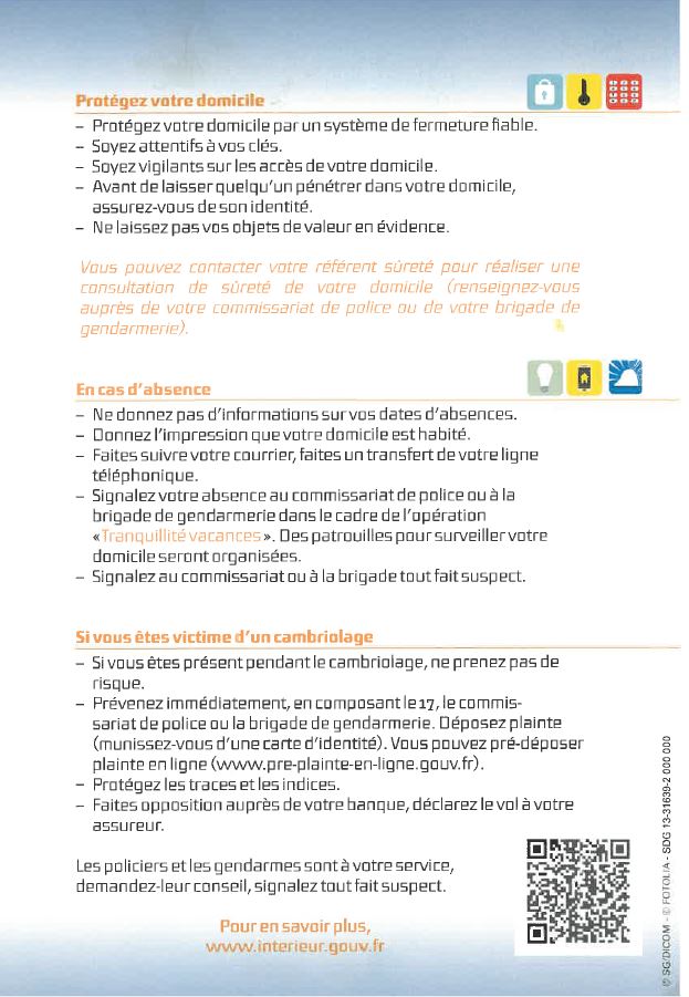 Les cambriolages ont lieu, en l’absence des occupants et en priorité dans les résidences principales. Pensez à bien fermer les portails, portes, fenêtres et volets surtout à l’arrière des habitations. Ne pas oublier garages, dépendances et véhicules. Les vols concernent l’argent liquide et les bijoux.
