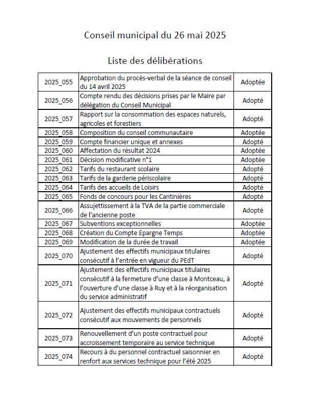Chaque séance du conseil municipal donne lieu à un procès verbal qui informe les citoyens des décisions prises par les élus.
