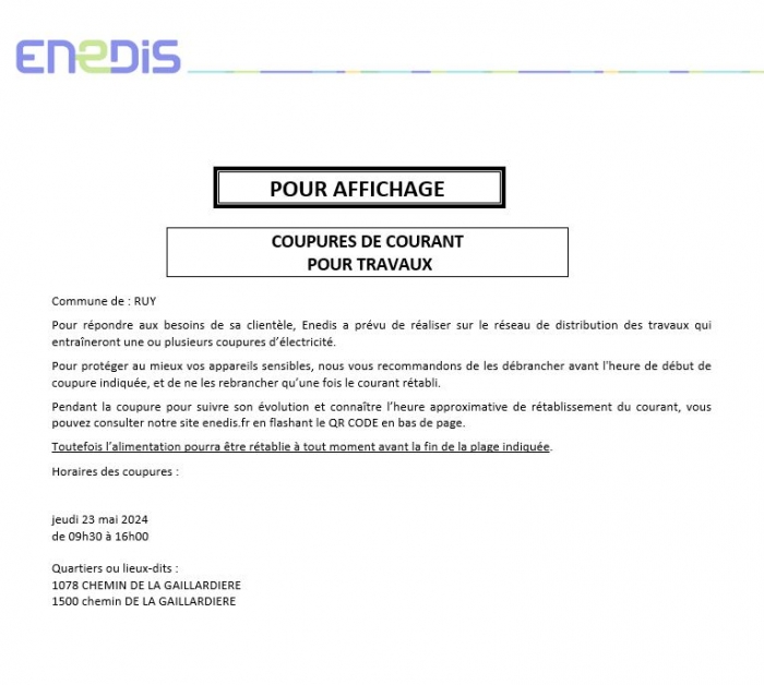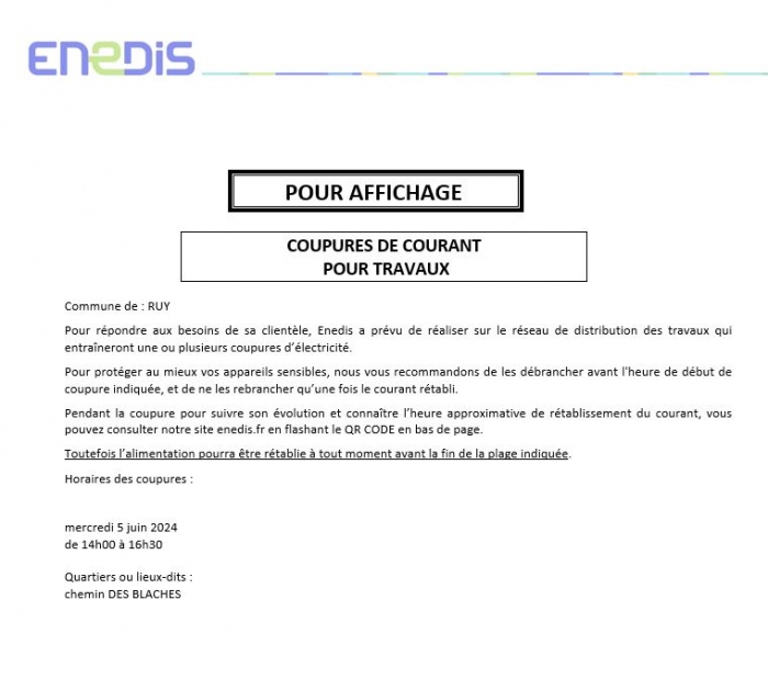 Retrouver ici tous les avis réseaux, infos coupures d'électricité, élagage..