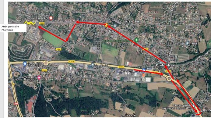 Desserte de l’arrêt Ruy Pharmacie sur un arrêt provisoire au niveau du rond-point