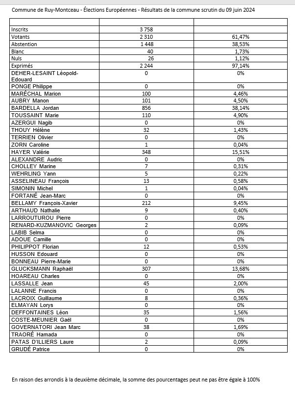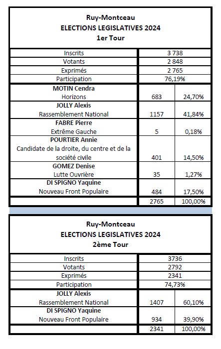 Retour sur le résultats des différents scrutins qui se sont déroulés à Ruy-Montceau.